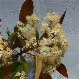 叶片革质,倒卵状椭圆形,长8-15厘米,宽2.5-4.5厘米; 红叶石楠 总花梗和花梗无毛或有柔毛;总花梗和花梗无毛或有柔毛;萼筒杯状,外面有柔毛,萼片三角形,先端急尖,内面无毛;花瓣白色,倒卵形,内面有白色长柔毛,基部有短爪。花期4月。产台湾,生于海拔850米。