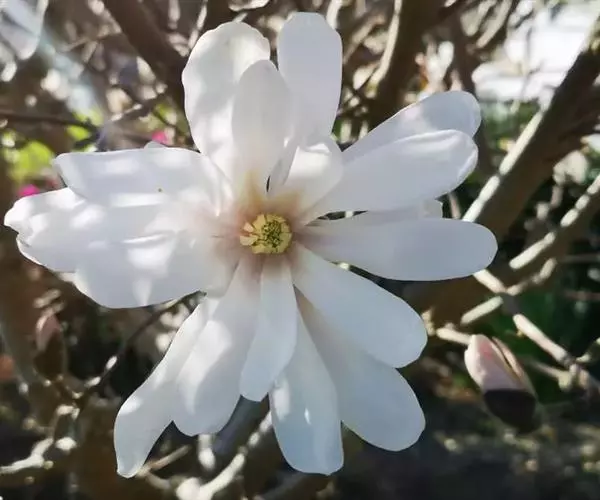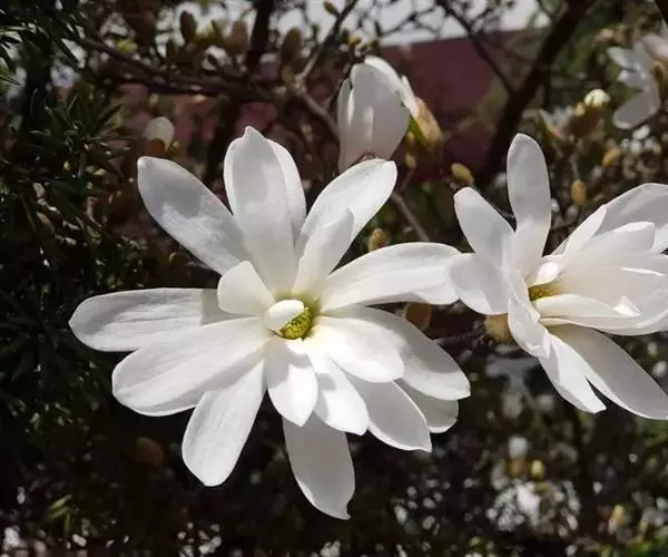 此星花玉兰树高6米,树冠东西径6.3米,南北径7.1米,树干经约50厘米。花朵由两种颜色组成,花瓣上半部分呈白色,下半部分为粉红色。花香飘逸。盛花期时,满树鲜花尽开,有数千朵,花团锦簇,美丽壮观。
