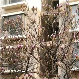 落叶小乔木,枝繁密,灌木状;树皮灰褐色, 当年生小枝绿色,密被白色绢状毛,二年生枝褐色;冬芽密被平伏长柔毛。叶倒卵状长圆形,有时倒披针形,长4-10厘米,宽3.7厘米,顶端钝圆、急尖或短渐尖;基部渐狭窄楔形,上面常绿色,无毛,下面浅绿色;中脉及叶柄被柔毛;叶柄长3-10毫米,托叶痕约为叶柄长之半。花蕾卵圆形,密被淡黄色长毛;花先叶开放,直立,芳香,盛开时直径7-8.8厘米;外软萼状花被片披针形,长15-20毫米,宽2-3毫米,早落;内数轮瓣状花被片12-45,狭长圆状倒卵形,长4-5厘米,宽0.8-1.2厘米, 花色多变,白色至紫红色。聚合果长约5厘米,仅部分心皮发育而扭转。花期3-4月。