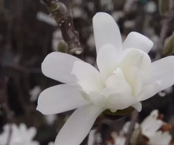 星花玉兰,原产日本岐阜县,分布区狭小,久经栽培,引种至欧美,有多种栽培品系。性耐风寒及耐碱性土壤。我国青岛、南京有栽培。为美丽的庭园观赏树种。落叶小乔木,枝繁密,灌木状;树皮灰褐色, 当年生小枝绿色,密被白色绢状毛,二年生枝褐色;冬芽密被平伏长柔毛。