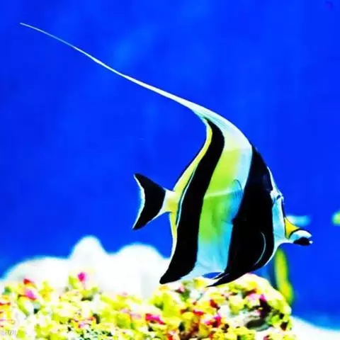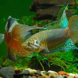 叉尾斗鱼,体形与圆尾斗鱼相似。腹鳍有1根分节鳍条特别延长,雄鱼鳍条延长尤甚,尾鳍叉形。…