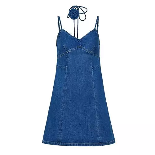 蓝色吊带裙