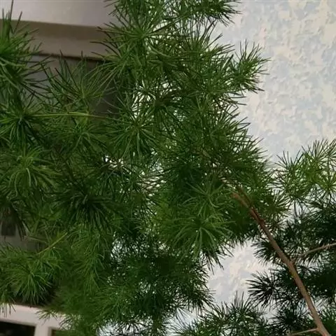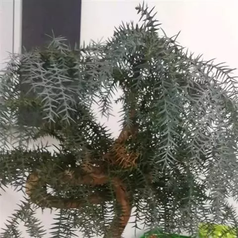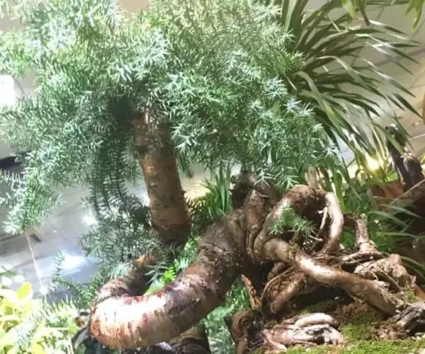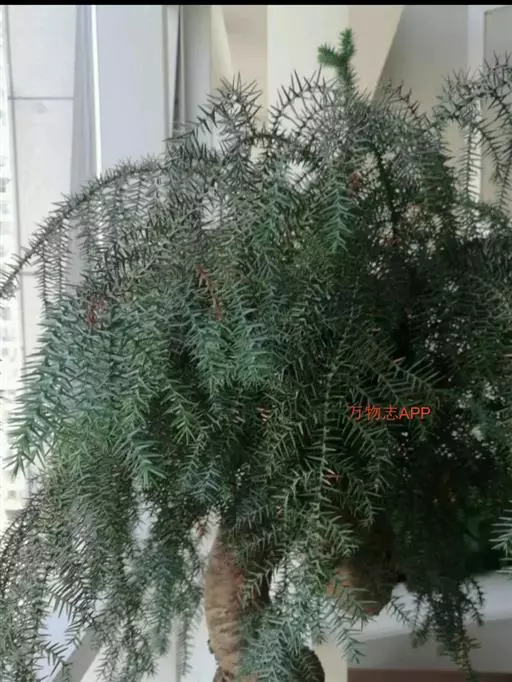 澳洲杉,常绿乔木,一般盆栽为幼树,高在2米以下。喜温暖、潮湿的环境,树冠尖塔形,深绿色。茎干直立,侧枝轮生,水平伸展。小枝二列互生,水平延伸或略下垂。叶有二型。球果近圆形。