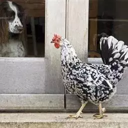 家鸡属于鸟纲,鸡形目,雉科。是由原鸡长期驯化而来,它的品种很多,如来航鸡、白洛克、九斤黄、澳洲黑等。仍保持鸟类某些生物学特性,如可飞翔,习惯于四处觅食,不停地活动。听觉灵敏,白天视力敏锐,具有神经质的特点,食性广泛,借助吃进砂粒石砾以磨碎食物。