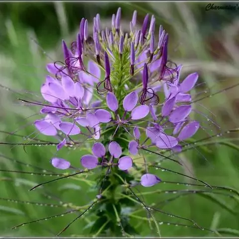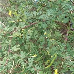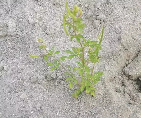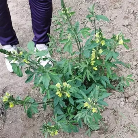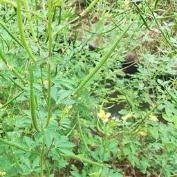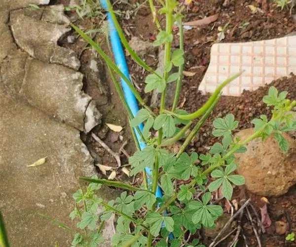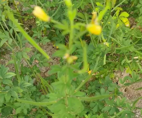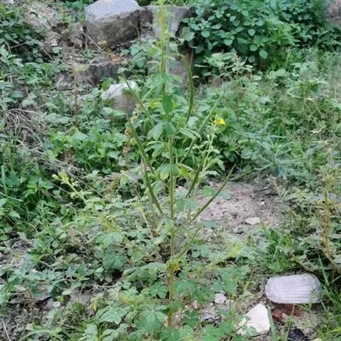 一年生直立草本,高0.3—1米,茎基部常木质化,干后绿黄色,有纵细槽纹,全株密被粘质腺毛与淡黄色柔毛,无刺,有恶臭气味。叶为具3—5(-7)小叶的掌状复叶,小叶薄草质,近无柄,倒披针状椭圆形,中央小叶最大,长1-5厘米,宽5—15毫米,侧生小叶依次减小,全缘但边缘有腺纤毛,观脉3-7对;叶柄长(1-)2—4(-6)厘米,无托叶。花单生于茎上部逐渐变小与简化的叶腋内,但近顶部则成总状或散房状花序,花梗纤细,长1-2厘米;萼片分离,狭椭圆形至倒披针状椭圆形,长6-7毫米,宽1—3毫米,近膜质,有细条纹,内面无毛,背面及边缘有粘质腺毛;花瓣淡黄色或桔黄色,无毛,有数条明显的纵行脉,倒卵形或匙形,长7-12毫米,宽3—5毫米,基部楔形至多少有爪,顶端圆形;雄蕊10-22(-30),花丝比花瓣短,花期时不露出花冠外,花约背着,长约2毫米;子房无柄,圆柱形,长约8毫米,除花柱与柱头外密被腺毛,花期时亦不外露,1室,侧膜胎座2,胚珠多数,子房顶部变狭而伸长,花柱长2—6毫米。柱头头状。果直立,圆柱形,劲直或稍镰弯,密被腺毛,基部宽阔无柄,顶端渐狭成喙,长6—9厘米,中部直径约3毫米,成熟后果瓣自顶端向下开裂,果瓣宿存,表面有多条多少呈同心弯曲纵向平行凸起的稜与凹陷的槽,两条胎座框特别凸起,宿在的花柱长约5毫米;种子黑褐色,直径1—1.5毫米,表面约有30条横向平行皱纹。无明显花果期,通常3月出苗,7月果熟。