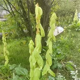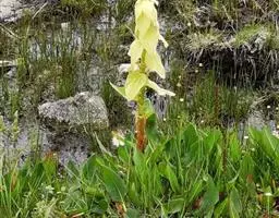 塔黄和竹子一样,是单次结实的多年生草本植物,即经过5-7年的营养生长后才开花结果,之后便死去,一生只开一次花。开花以前的塔黄并不起眼,乍一看去,很像一棵大白菜。但是到了开花这一年,它会长出高达1.5-2米的花序,由下向上逐渐变细;花序外面一层一层包裹着大型半透明的奶黄色苞片,其实这是变态的叶。这时候,它成了喜马拉雅高山地区“身材”最高的草本植物,远远望去,好似一座金碧辉煌的宝塔,格外醒目,“塔黄”一名便由此而来。