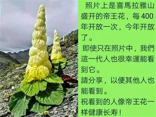 会长出一根高达近两米高的“花柱”;这根“花柱”就像一把太阳伞,撑起一层又一叠的半透明而且乳黄色苞片(其实这是一种变幻姿态的叶子)。此时,塔黄摇身一变,成了高山上最“魁梧”的小草,远远望去,好似一座金碧辉煌的宝塔。这其实是塔黄的“高招”,这些半透明的“瓦片”(苞片)层层叠叠,仿佛一座尖顶的温室,能够积聚热量、提升温度(这就是“温室植物”的由来),经过测量,在晴朗的正午,“室内”温度比寒冷的“户外”甚至高出10℃以上,而且它还能遮风挡雨,这真是太好了!不仅花朵在里面可以热情地自由绽放,昆虫们也有了温暖的“居室”,这些带翅膀的小“居民”们还顺便帮塔黄完成了传播花粉的“大业”。
