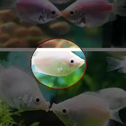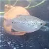 黑骨舌鱼还有一种变异体,白金个体,是相当珍贵的个体,其特别之处为身体色彩随着龙鱼长大而变成白色,三鳍带有蓝黑色金属光泽。