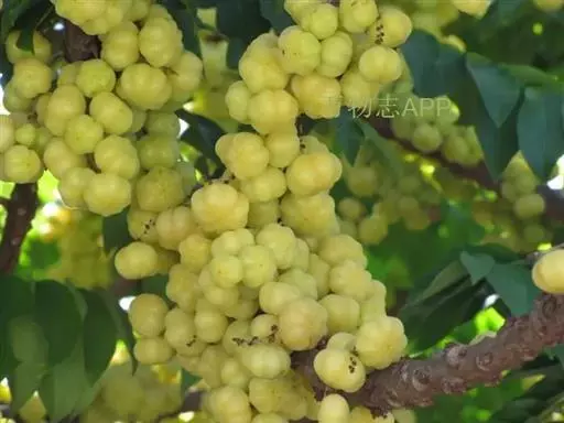 西印度醋栗是大戟科叶下珠属常绿灌木或小乔木,树高2-5米,夏至秋季开花,花后座果率较高,成熟果实扁球形,具凸稜,淡黄绿色,可食用,生食口感爽脆, 水分多,但味酸,主要用于制造果酱、果汁、或是腌渍后食用。西印度醋栗植株优美,花小,粉红色,开在老枝干上,花后结许多青色的小果,娇小可爱。因为怕冻,植株种植在温室内,果实每年六月初成熟,色泽圆嫩,玉质透明,有纵棱,细看像微型的水晶小南瓜,又象是一群微笑的玉娃。