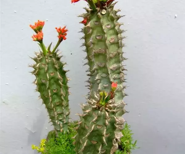 常绿大戟以丛生灌木的形式生长,具有很多茎,在杯状聚伞花序上具有典型的黑色或是深棕色蜜腺。…