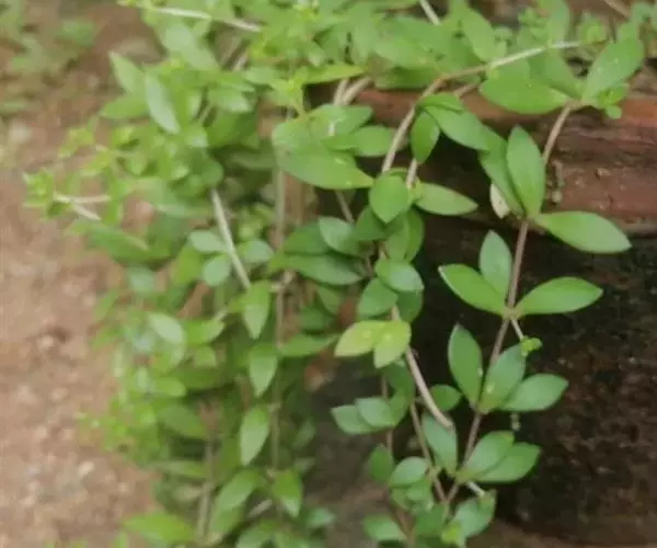 垂盆草,多年生肉质草本。其茎纤细,长可达500px以上,部分节上可见纤细的不定根。3叶轮生,叶片倒披针形至矩圆形,绿色,肉质,长1.5~70px,宽0.3~17.5px,先端近急尖,基部急狭,有距。气微,味微苦。喜阴湿环境,较耐寒。常生于海拔1600m以下的向阳山坡、石隙、沟边及路旁湿润处。