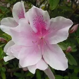 鹿角杜鹃(学名:Rhododendron latoucheae Franch.):常绿灌木或小乔木,高可达5米;小枝开展,灰色或淡白色,无毛。叶集生,近于轮生,革质,卵状椭圆形或长圆状披针形,上面深绿色,具光泽,下面淡灰白色,叶柄无毛。花芽长圆状锥形,单生枝顶叶腋,花梗无毛;花萼不明显;花冠白色或带粉红色,裂片开展,长圆形,花丝扁平,子房圆柱状,褐色,蒴果圆柱形,花柱宿存。3-4月开花,稀5-6月,7-10月结果。