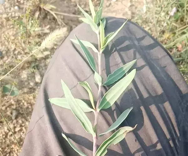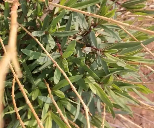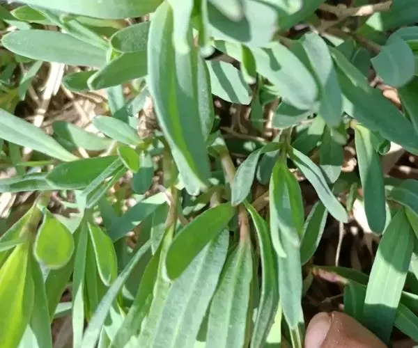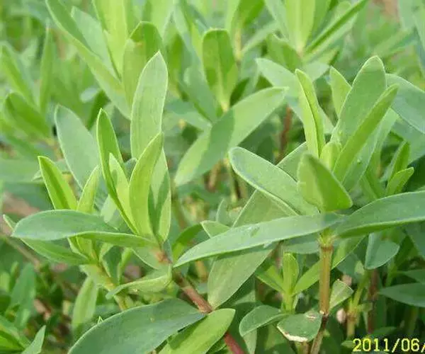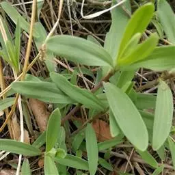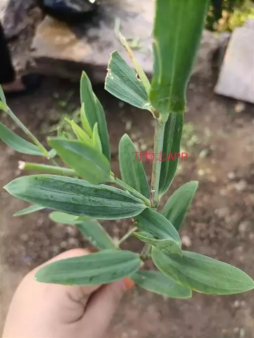 叶片近革质,稍厚,长圆形,长4-8厘米,宽5-15毫米,顶端短凸尖,基部稍狭,两叶基相连成短鞘状,微抱茎,脉3-5条,中脉明显,上部叶较狭,近线形。