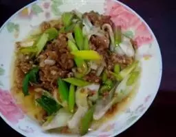 2.把鸡蛋磕入盆内搅开,加入精盐、放入面粉,用手搅匀后,一手倒菠菜水,一手和面,最后加入50g冷水把面和成面团揉好。稍饧后,放案板上擀成1mm厚的薄片,切成5mm宽的细条,下入开水锅煮熟捞出,过冷水即成。随后放油,上火加热后,将海参、鱿鱼、玉兰片、酱油、味精、姜末等放入翻炒,最后将面条放入,拌匀即成。
