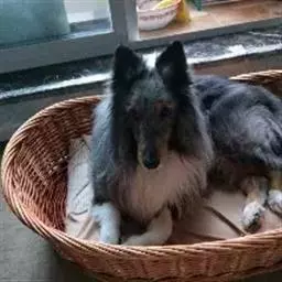 长形头部,有点大。颅顶明显拱起,两耳间不太宽阔,两眉间适度较窄。额上有轻微的皱纹。颊部不凸出。鼻梁直,颚部健壮,嘴唇接合良好。牙齿剪状或水平咬合。眼睛中等大小,眼窝较深,眼神温和,蓝灰色披毛的眼睛棕色或较深到黑棕色;咖啡色披毛的眼睛琥珀色或较深颜色。鼻子较大,发育良好,蓝黑色狗的鼻子呈黑色,咖啡棕色的鼻子呈黑棕色。耳朵中等大小,耳根较高,呈三角形前折,紧贴颊部悬垂。