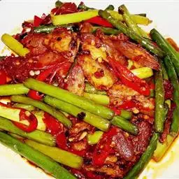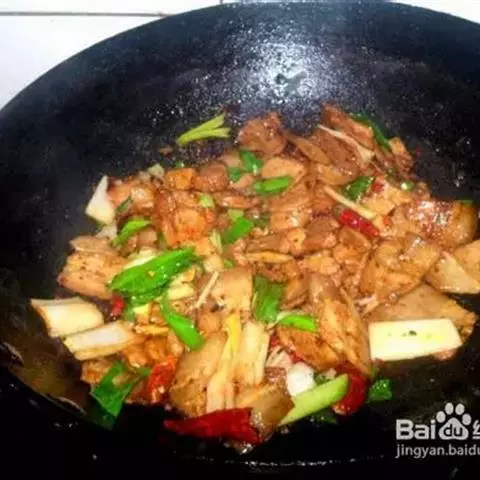 6,倒入炸好的肉