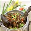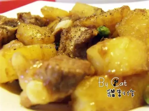 (4)将白饭盛在盘子中,淋上煮好的咕咾肉酱即可。