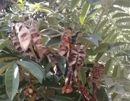 海南红豆的病虫害很少见。阴雨季节有时苗木发生根腐,可用70%的石灰粉与30%的草木灰混合施用,效果较好。5-6月有角斑病发生时,可用1:1:100的波尔多液喷雾防治。砂蛀蛾危害时,可剪除枯梢,消灭幼虫。