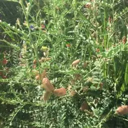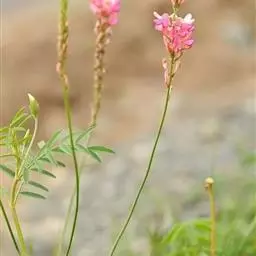 圆锥花序顶生,长20-30厘米;花长1.5-2厘米;花萼钟状,比花梗长,被柔毛,萼齿阔三角形;花冠粉红色而带黄白色,各瓣均具柄,旗瓣长13毫米,瓣片基部有角质耳状体2枚,翼瓣倒卵圆形,龙骨瓣基部耳形;子房密被褐色短柔毛,内有胚珠4粒,花柱无毛而弯曲。