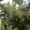 海南红豆结果时间较迟,且有大小年之分。单株产果量15~25kg不等。其果熟期可从11月中旬一直延续到次年1月下旬。采种应于12月上中旬当果实盛熟时采收肥大饱满呈橙黄色荚果,置于太阳下 海南红豆的豆荚 暴晒至自行开裂脱出艳红色种子。出种率12%~13%,种子千粒重968~1168Kg。处理好的种子切忌暴晒,稍阴干即可播种,最好是即采即播,否则会降低发芽势和发芽率。如需贮藏,需剥去或置于水中搓擦洗去红色种皮,伴以细沙或椰渣用薄膜袋密封可贮藏1~2个月。如不及时处理,半个月以内即霉烂甚至失去发芽力。