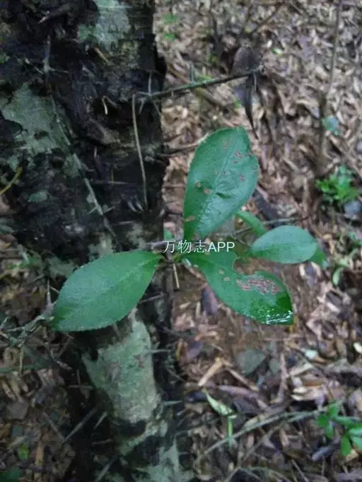 常绿乔木,高3-5米,可达7米;老枝灰黑色,无毛,皮孔棕黑色,近圆形,散生。叶片革质,幼时及老时皆呈红色,椭圆形、长圆形或长圆倒卵形,长5-9厘米,宽2-4厘米,先端渐尖,基部楔形,边缘有疏生浅钝细锯齿,两面无毛,侧脉10-18对;叶柄长1-1.5厘米,无毛。