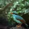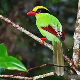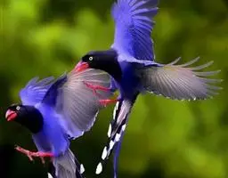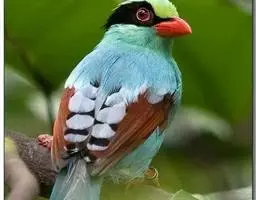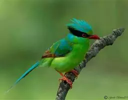 蓝绿鹊:中型鸟类,共有5个亚种。体长36-38厘米。尾长,嘴、脚红色。通体羽色主要为草绿色,…