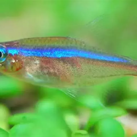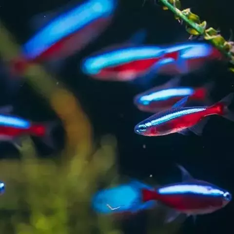 在光照下,宝莲灯鱼全身闪烁着金属的光泽,游动时时而蓝色,时而绿色,极为美丽。