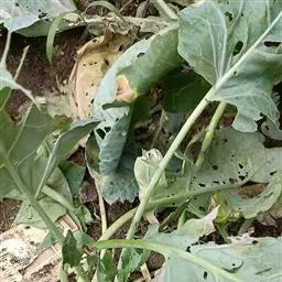 危害:菜青虫又叫青虫,成虫是菜白蝶,也叫菜粉蝶。以幼虫为害叶片,吃成孔洞或缺刻,严重时全叶吃光,仅剩叶柄和叶脉。菜青虫一年发生8-9代,11月开始以蛹越冬。3月中旬第一代成虫开始发生。成虫白天活动吸食花蜜,喜欢在甘蓝、花椰菜上产卵。每头雌蛾可产卵100-200粒,卵期3-8天。幼虫共五龄,三龄前食量较小,抗药性差。