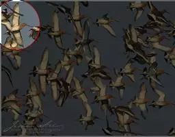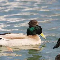 绿头鸭属游禽,大型鸭类。体长47-62厘米,体重大约1千克,外形大小和家鸭相似。雄鸟嘴黄绿色,脚橙…