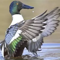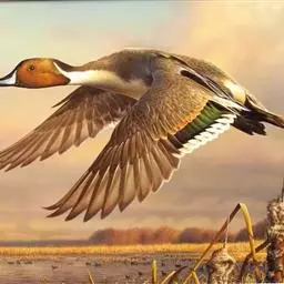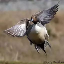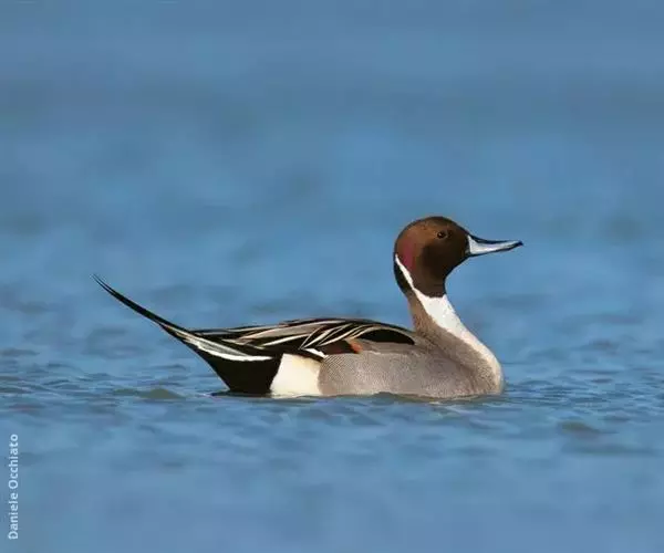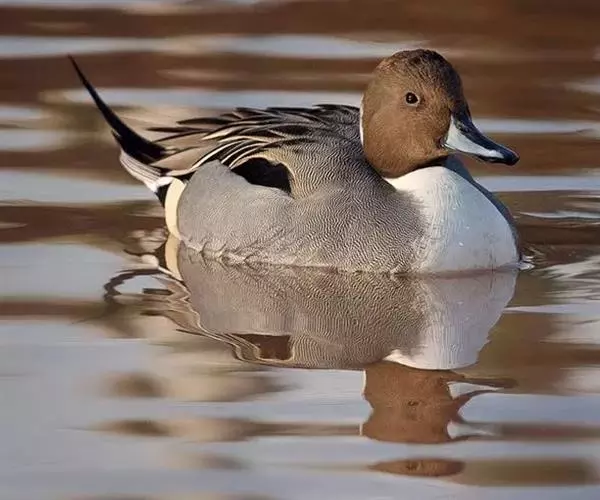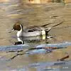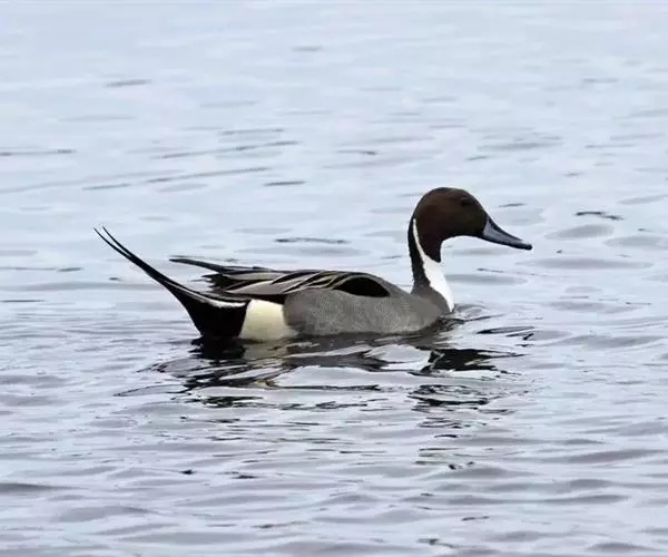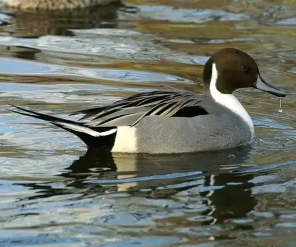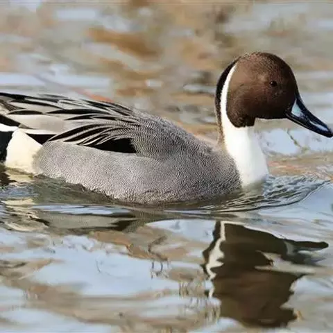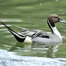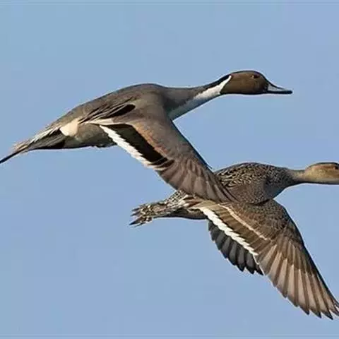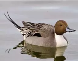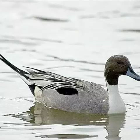 针尾鸭(学名:Anas acuta):是鸟纲、鸭科的中型游禽,属水鸭类。体长43-72厘米,体重0.5-1千克。雄鸭背部满杂以淡褐色与白色相间的波状横斑,头暗褐色,颈侧有白色纵带与下体白色相连,翼镜铜绿色,正中一对尾羽特别延长。雌鸭体型较小,上体大都黑褐色,杂以黄白色斑纹,无翼镜,尾较雄鸟短,但较其他鸭尖长。