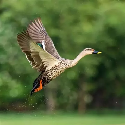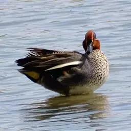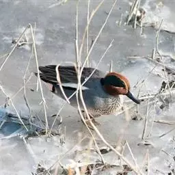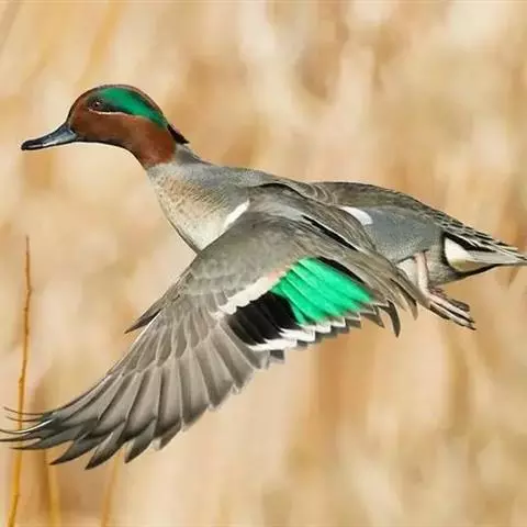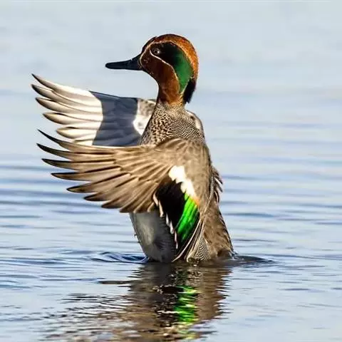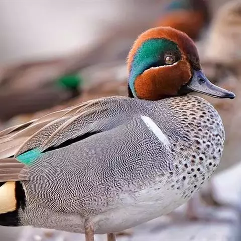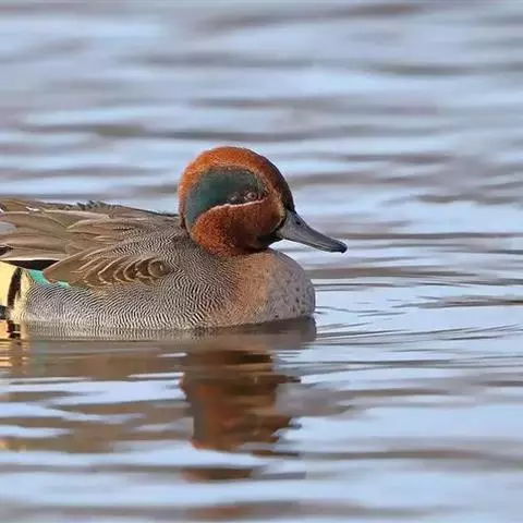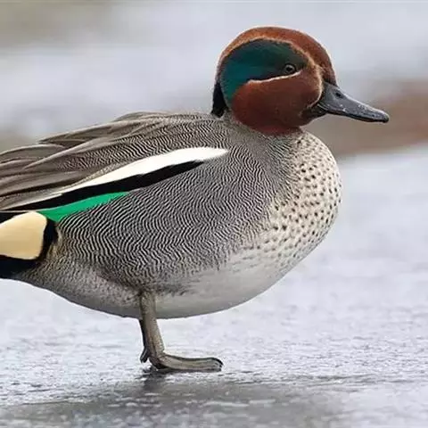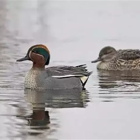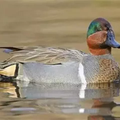 绿翅鸭是小型鸭类,体长37厘米,体重约0.5千克。嘴脚均为黑色。雄鸟头至颈部深栗色,…
