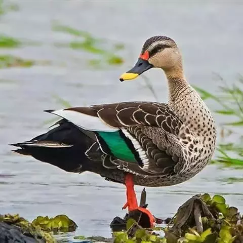 斑嘴鸭是雁形目鸭科鸭属鸟类。李文华,旭日干,中国自然资源通典 辽宁卷,内蒙古教育出版社,2015,第361页雄鸟体羽大部棕褐色;嘴蓝黑色,先端黄色,嘴基至耳区贯眼线黑褐色;虹膜黑褐色,外圈橙黄色;眉纹黄白色,头顶、额、枕部暗棕褐色;上背灰褐色,下背褐色;翼镜蓝绿色带紫色金属光泽;胸部棕白色杂褐色斑,腹褐色;腰、尾上覆羽、尾羽黑褐色,尾下覆羽黑色;跗蹠和趾棕黄色,爪黑色。雌鸟嘴端黄斑不明显,下体自胸以下淡白色,杂暗色斑。因嘴端有黄斑而得名。斑嘴鸭分布于中国各省区,栖息于河流、湖泊、水塘及沼泽等湿地中。善游泳、行走,游泳时尾露出水面,除繁殖期外,常成群活动,也和其他鸭类混群。主食植物的种子、嫩芽和幼苗等植物性食物,也食昆虫、软体动物等动物性食物。繁殖期5—7月,以干草和绒羽在岸边草丛中做巢,1年繁殖1窝,每窝产卵8—14枚,孵化期24天。斑嘴鸭被列入中国国家林业局2000年8月1日发布的《国