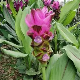 火炬姜 常见品种有深红、大红和粉红等:深红品种,植株、茎、叶、花包括地下茎等部分全部为亮红色,颜色较深;大红品种,茎叶绿色,花色大红;粉红品种,茎叶绿色,花粉红。此外,火炬姜还有1个变种,其茎秆、叶片均为紫红色,花朵为深红色,较为稀有。