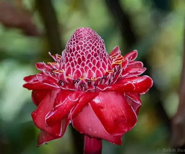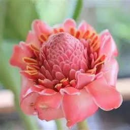 火炬姜,又名瓷玫瑰,菲律宾蜡花,姜科茴香砂仁属 多年生大型草本植物,原产于东南亚的印度尼西亚、马来西亚、泰国南部 等热带地区,中国广东、福建、台湾、云南等地有引种栽培。