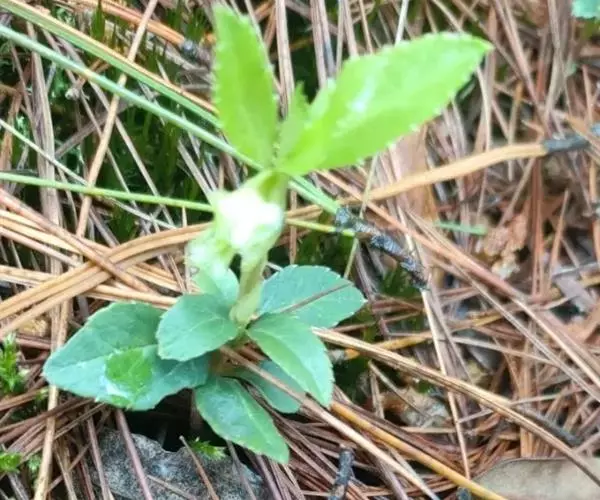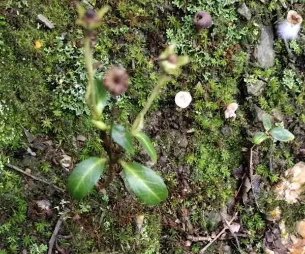 常绿半灌木状草本,高8—18厘米;根状茎细长,横生,地上茎直立, 少有分枝,圆柱形,无毛。叶对生,或互生、近对生,排成轮状;叶片革质,宽披针形,稀椭圆形,长1.5—3厘米,宽0.6—0.8厘米,先端急尖,基部圆形或宽楔形,叶面深绿色,背面稍淡,两面无毛,边缘具疏锯齿,中脉于叶面凹陷,背面凸起,侧脉不显;叶柄长5—8毫米,无毛。总花梗长3—5厘米,直立,具乳头状突起,下部有1—2个膜质苞片。花1—2朵顶生,白色,俯垂,直径1—1.2厘米;萼片5,膜质,宽披针形,长6—7毫米,边缘有不整齐的锯齿;花瓣5,倒卵状圆形至倒卵状长圆形,长7—8毫米,宽3.5—4.5毫米;雄蕊10,花丝短,长约2毫米,中下部扩大如翅状,具缘毛;花药2室,顶孔开裂;花柱极短倒圆锥形,柱头盾状,有5个波状齿。蒴果扁球形,直径4—5毫米。花期6—7月,果期8—10月。