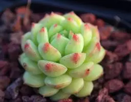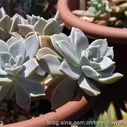 奥普琳娜为风车石莲属多肉植物,肉质叶互生,呈莲花状排列,整体颜色呈现粉粉的淡蓝色,叶缘和尖端容易泛红,…