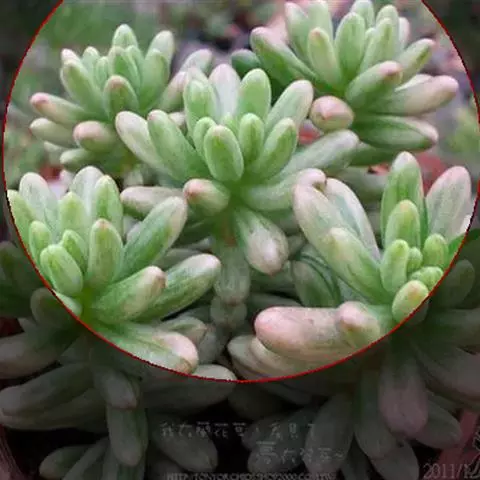 青星美人是景天科厚叶草属的多肉植物。开花时抽生出长长的花梗,簇状花序,红色花朵依次开放,呈倒钟形,…
