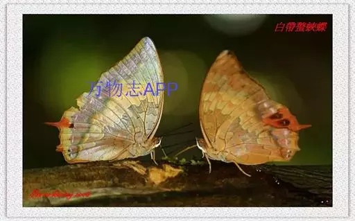 末龄幼虫体色深绿,体长33-62mm,色斑褐色。头深绿色,宽7-8mm;角突 白带螯蛱蝶---幼虫 绿色,长7.3-8.1mm。