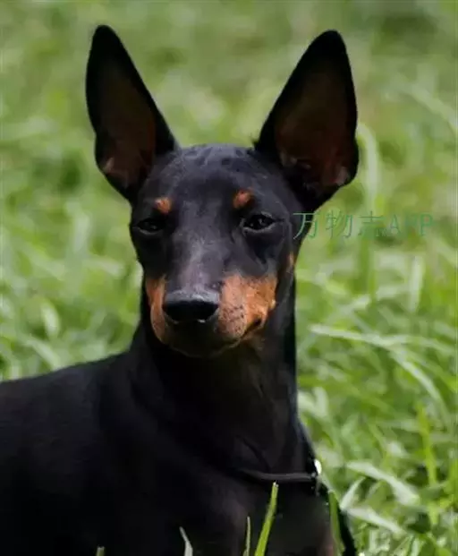 小体型,黑色的短毛狗,特点是长有褐色斑纹和尖细的尾巴。这一品种的结构显示出流线形,结实、优雅的外观,头部呈楔形,长且干净,具有敏捷、快乐和警惕的表 情。流线型、紧凑、肌肉发达的身体使曼彻斯特更具有强大的爆发力和敏捷度,是培养了用来捕杀害虫、老鼠的品种。