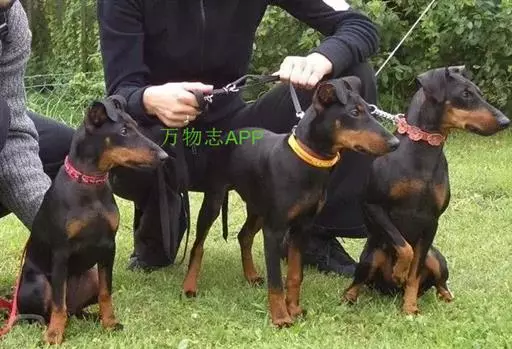 【毛色】毛色为纯黑色与棕褐色两种,不混杂。两者之间界限清楚,条 曼彻斯特梗 理分明。眼睛上部和颊部两边有棕褐色斑点。在头部,吻部一直到鼻部均为棕褐色,鼻子本身为黑色,褐色一直延伸到喉下方,呈V形。耳内部分为黑色,前肢上方的两侧胸壁有“蔷薇花型”的褐色斑纹,幼犬与成年犬常见。前肢掌部有黑色拇指纹,其系部一直到腕关节均为探褐色,四肢的趾部上方均有黑色细线纹,两后肢有棕褐色的斑纹从趾部前内方一直延伸到膝部下方,