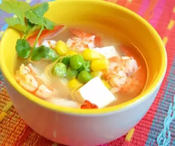 锅置旺火上,下肉汤加盐、味精烧沸,将肉片、鱼片抖散投入汤锅里,放入虾仁用勺划散,烧沸后加入绍酒,撇去浮沫,大汤碗里撒上胡椒粉,然后将三鲜汤倒入碗里即成。