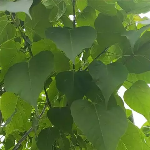 楸紫葳科小乔木,高8-12米。叶三角状卵形或卵状长圆形,宽达8厘米,顶端长渐尖,基部截形,…