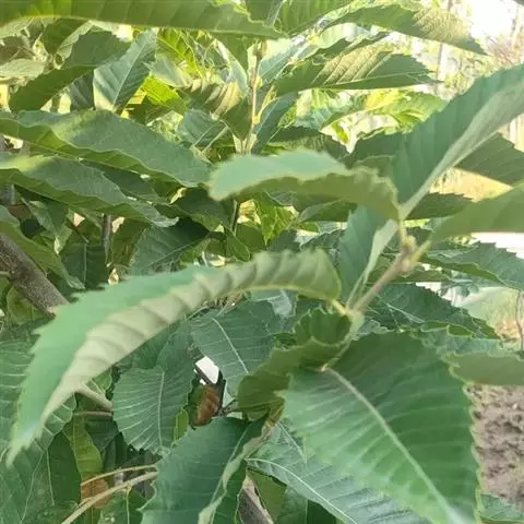 栗,壳斗科栗属落叶乔木植物,茎枝较粗,呈圆柱形;表面深绿色,有细纵纹和小绒毛;叶多卷曲,具短柄,…