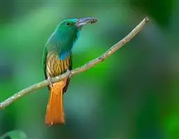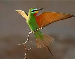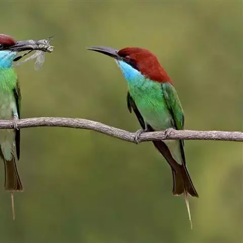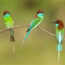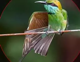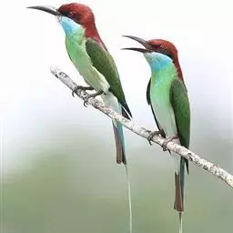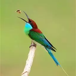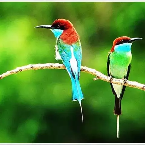 栗喉蜂虎是蜂虎科蜂虎属的鸟类。有热带鸟类羽毛艳丽的特征:喉部是栗红色的,黑色的过眼纹,…