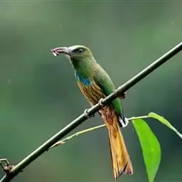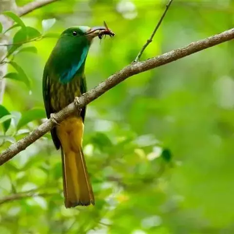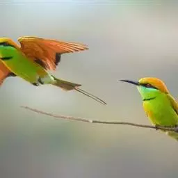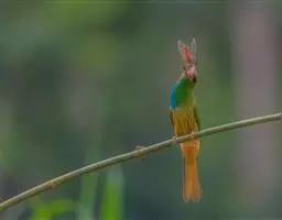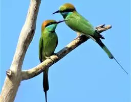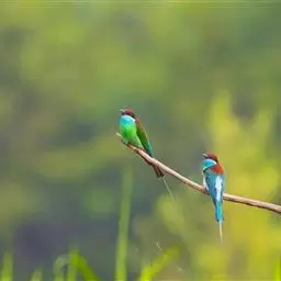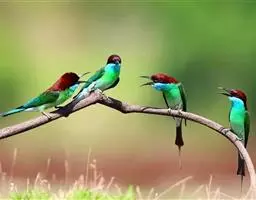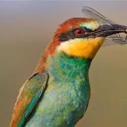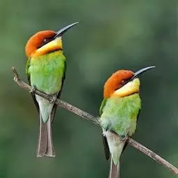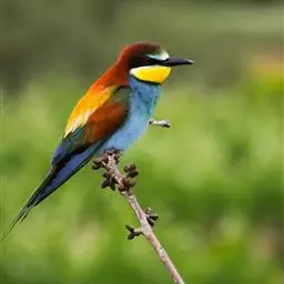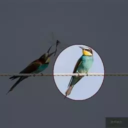 蓝颊蜂虎:是蜂虎科、蜂虎属的鸟类,共有2个亚种。体长27-33厘米,翼展46-49厘米,…