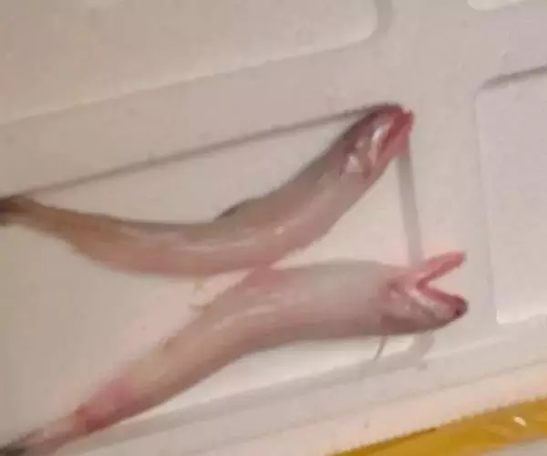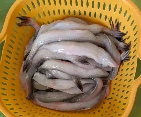 全长25.2毫米稚鱼,体较长而侧扁,肛门位于紧蛞臀鳍正前方,口裂大,下颌较上颌突出,前鳃盖骨显著前倾,各鳍均较长,脂鳍长,从鳃盖至臀鳍前腹侧具7对黑色素,稚鱼夏秋间在吕四近海可采到。