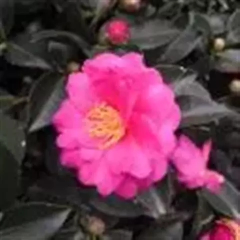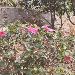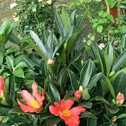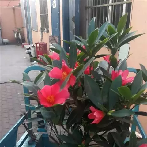 该种叶似茶,花如梅而得名。茶梅,体态秀丽、叶形雅致、花色艳丽、花期长(自11月初开至翌年3 月),树型娇小、枝条开放、分枝低、易修剪造型,适宜盆栽、庭院、阳台、宾馆等理想的盆栽名花。