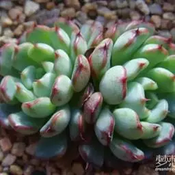 小红衣是景天科、拟石莲花属的一种多肉植物。叶片匙形,扁平细长,叶表具白粉,有明显的半透明边缘,…