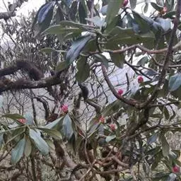 露珠杜鹃:灌木,小乔木,高约2-9米;小枝粗壮,直径约4-5毫米;幼枝有薄层绒毛和腺体,…