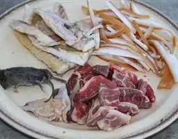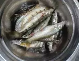 干烧小黄鱼 是由黄鱼等制作的食物,配料是葱、姜、蒜。